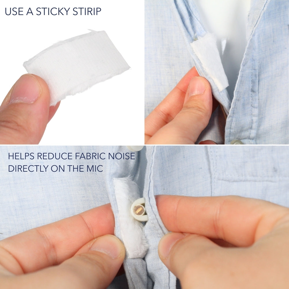 Simply cut a piece to the size you need. A small strip between the mic and a scratchy fabric takes the edge off rustle; a larger patch wrapped around the capsule adds a touch of wind protection. The smooth backing makes it easy to tape your cut‑outs in place with URSA Sticky Strips or Big Squares. Because you trim them yourself, the two sheets will give you plenty of custom covers.
