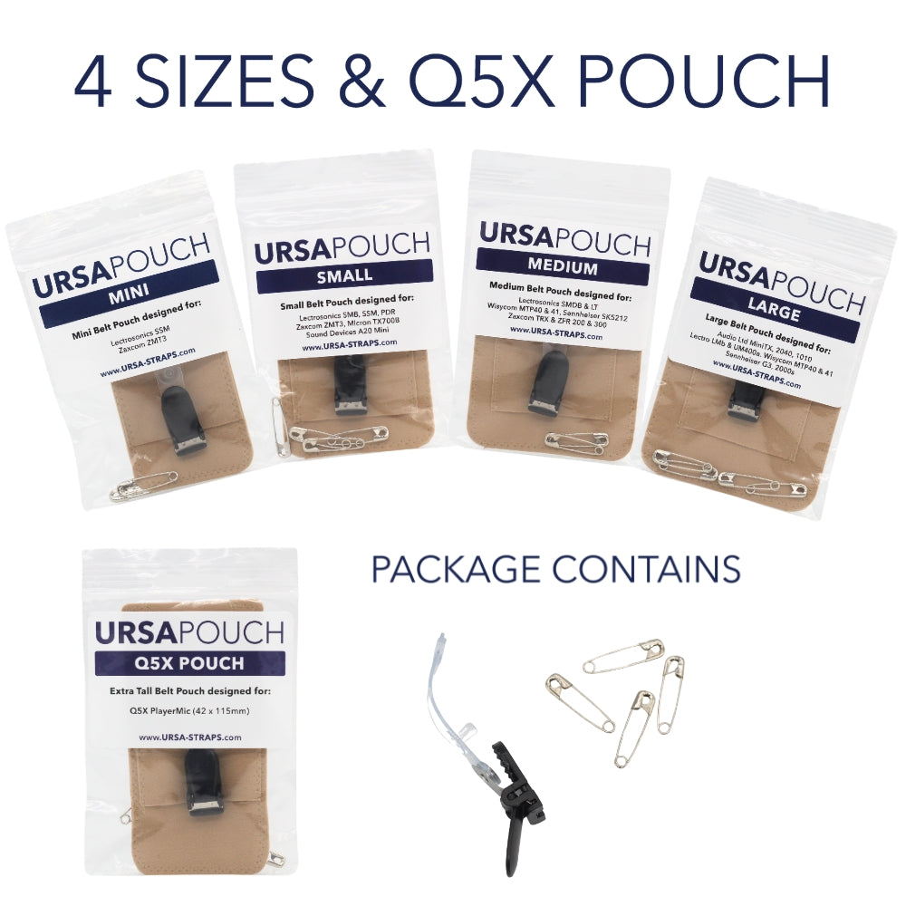 URSA Pouches are low-profile soft pouches which allow you to rig a transmitter vertically or horizontally to URSA Belts, standard belts or bras. They can also be sewn or pinned into costumes.