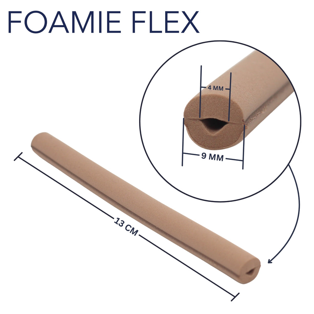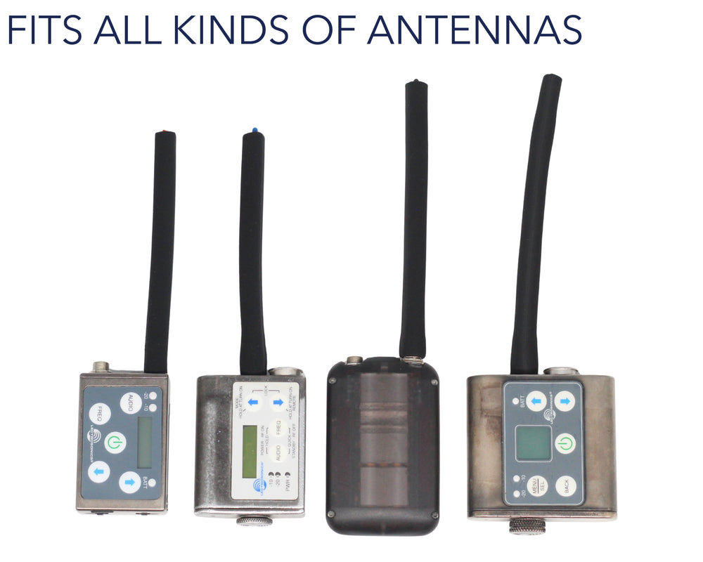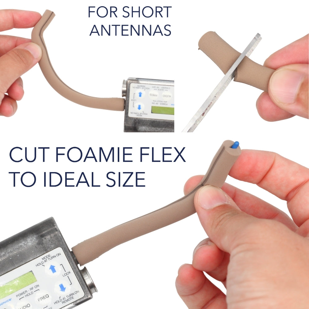 At 13 cm long with a 9 mm outer width and a 4 mm internal channel, the Foamie Flex slides easily over whip antennas of all types. The foam can be cut to size for shorter antennas and remains low profile for on-body use, making it suitable for film, TV, theatre and live performance.