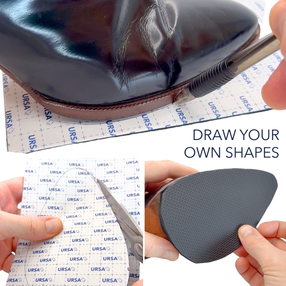 Soft Soles – made from 3mm rubber foam for sound absorption, grip and comfort. Best for the front of shoes where quiet performance is essential.